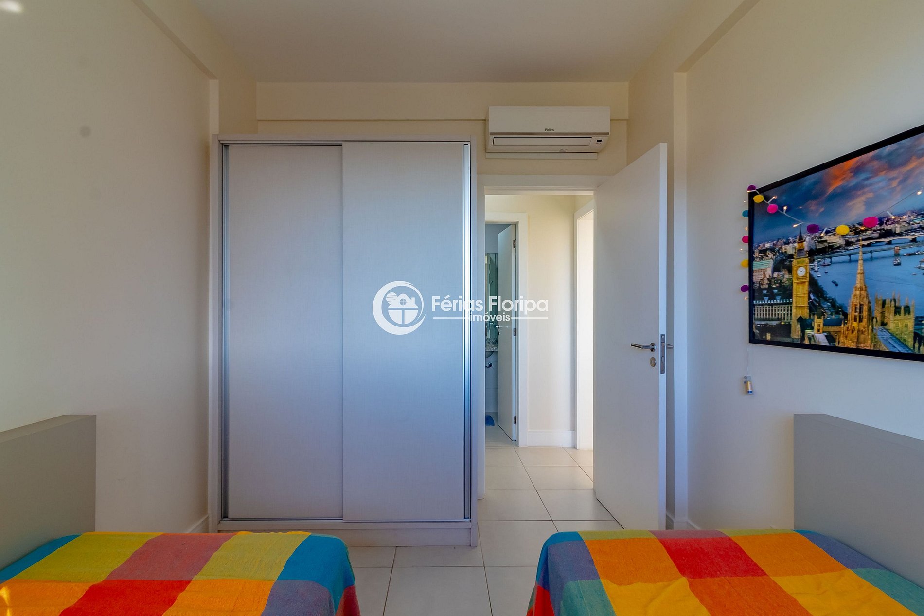 • Bedroom 2: 2 single beds with auxiliary bed (which join together to form a double bed)