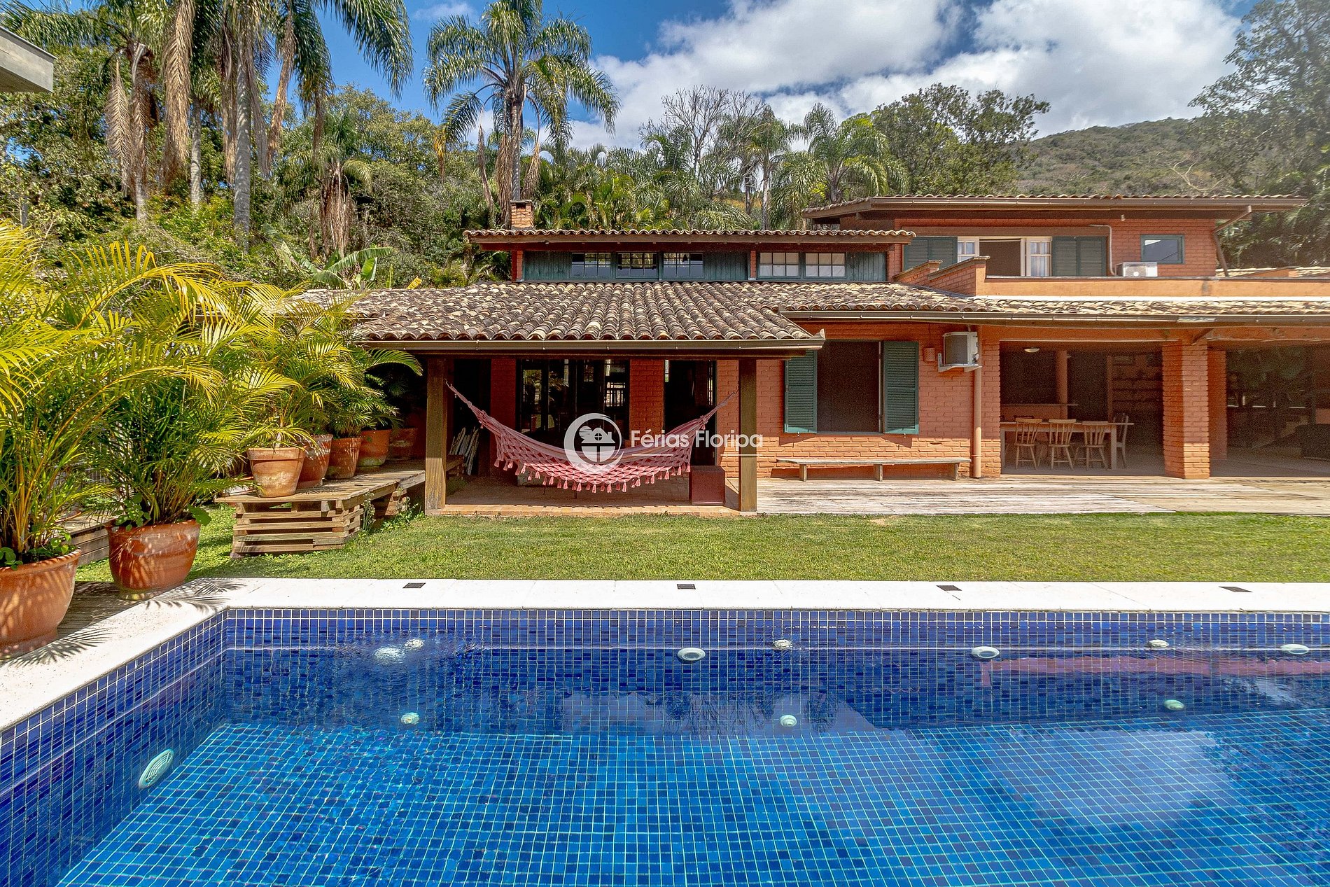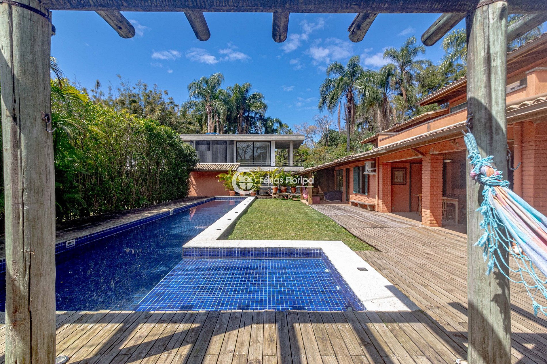 • Parte externa ampla com piscina convidativa e redes para relaxar e aproveitar o ambiente.